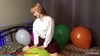 Mindi plays with a big yellow balloon for a long time, which she blows up several times. He's nice and tall while she rides the balloon. After playing nicely with the balloon, she gets a lighter... She makes it very exciting.