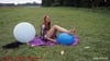 Elen pops three balloons in this clip and spares one by letting it fly. She obviously enjoys playing with the balloons.