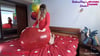 Heute werden Herzen gebrochen. Das Model bläst verschiedene Herzballons auf und lässt sie knallen.