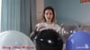 June is sitting on her bed and has gotten a small tool. With a small, sharp needle, she begins to glide over the thin, plump latex skin of the balloon. Oooo at the sight you will be completely different. Let June show you how delicate the balloons are.