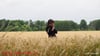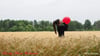 Afsana bläst mehrere Luftballons in einem Kornfeld auf. Sie bringt die Luftballons zum platzen indem Sie mit den Ballons über das Feld streift.