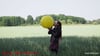 Dome inflates three balloons with her mouth. She spares the first balloon by letting it fly. The other two are not so lucky.