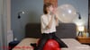 June is sitting on the bed with a balloon under her butt. Then she takes another balloon and starts inflating it. As the balloon gets bigger and bigger, she jumps and rides on the other balloon. Of course, no balloon can withstand that in the long run. She ties the balloon that has just been inflated and puts it back under her buttocks. A new round begins. She inflates a new balloon and at the same time rides on the other balloon. She repeats this six times. You will like the clip. Enjoy watching her inflate and ride the balloons.