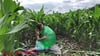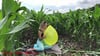 Alex sitzt in einem Maisfeld und bringt drei Ballons zum platzen. Sinnlich bläst sie die Ballons prall auf und gräbt dann mit den Fingernägeln in die armen Ballons.