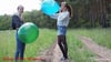 Sonea and her friend are standing at the edge of the forest. Both of them inflate a balloon for themselves. Sonea's friend's big balloon brushes against the grass while fooling around and bursts. After that, Sonea's must also believe in it. Both stand opposite each other and claw their fingers into the blue balloon.