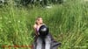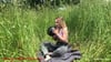 Alex sitzt im schönen grünen und lässt vier Ballons auf unterschiedliche Art und Weise platzen.