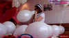 Lady in white. Now it really bangs. The model pops many balloons in different ways.