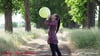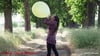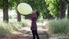 Dome bläst einen schönen großen Ballon mit ihrem Mund auf. Schaue ihr zu, wie der Ballon immer größer wird. Am Ende des Videos lässt Dome den Ballon aus dem Bild fliegen.