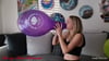 Xena inflates a "LOONERS UNITED" balloon until it bursts. In between she poses with the balloon, what a neck it gets.