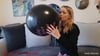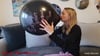 Xena bläst einen Ballon auf, bis dieser so prall ist und am Ende laut platzt.