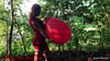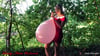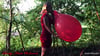 Alex wears a sexy red dress in which she inflates two balloons until it pops ... HOT ;-)