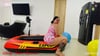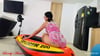 Andrea Escobar is having fun with her great red boat, which is fully inflated. Watch her grind and ride your beloved boat.