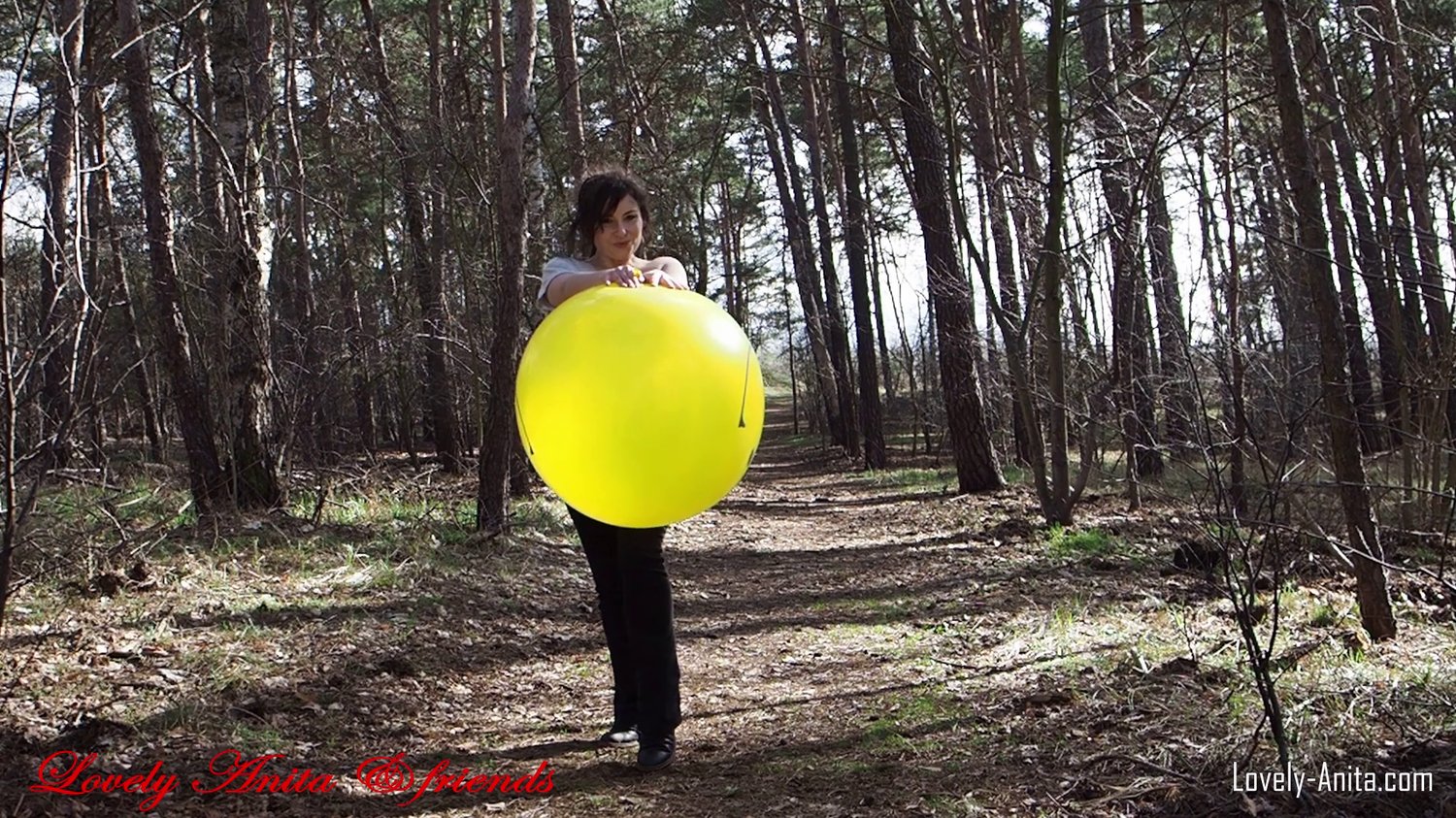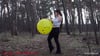 Afsana bläst einen großen gelben smiley ballon weiter auf und spielt damit. Ein non pop Clip.