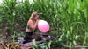 Alex sitzt in einem Maisfeld und bringt drei Ballons zum platzen. Dabei platzt ein Ballon beim aufblasen und die anderen beiden werden durch ihre Schuhe gequält.