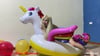 Dressed in a hot outfit, Regina will torment the balloons in a special way today. On her great inflatable unicorn she brings the balloons to the maximum load. Watch her pop the balloons beneath her or the unicorn. A hot ride for you and the unicorn.