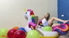 Regina im heißen Outfit bekleidet, wird die Ballons heute auf besondere Art und Weise quälen. Auf ihrem tollen aufblasbaren Einhorn bringt sie die Ballons an die maximale Belastung. Schau ihr dabei zu, wie die Ballons unter ihr oder dem Einhorn zum platzen gebracht werden. Ein heißer Ritt für dich und das Einhorn.