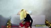 Aryx Looner rides a balloon until it pops. She blows up another one until it pops.