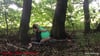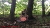 Alex sitzt im schönen grünen auf einer Decke und bläst Ballons auf, die sie dann durch drauf sitzen zum platzen bringt.