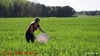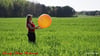 Cora is standing in a meadow and blowing up two balloons. She lets a big one fly and twirl through the air until it finally lands on the grass without breath. The next one doesn't have it so good.
