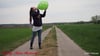 Dome bläst zwei Ballons auf und entlässt diese dann aber in die Freiheit.