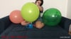 Jennifer sits on the sofa and inflates several balloons with the pump. Then she starts torturing the balloons with her fingernails. Again and again she drills her nails into the balloons ...