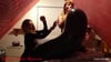 Sonea and her girl friend are sitting on the bed and want some fun. Both of them sat down on a large balloon and inflated two large balloons until they burst. Then both play wildly with the big balloon. The girls sit down on the balloon again and together pop a smaller balloon between them. At the end the two girls deflate the big balloon.