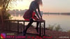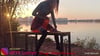 Aryx Looner sits on a bench by the lake and lets s bang.