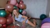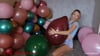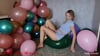Sehe, wie sie versucht durch ihr gewicht, die Ballons zu foltern und zum platzen zu bringen.