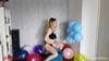 Xena bringt zwei Ballons durch drauf sitzen zum platzen.
