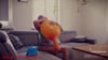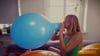 Als der Ballon endlich eine angemessende Größe hat, legt sie Ihn aufs Sofa und setzt sich rauf.